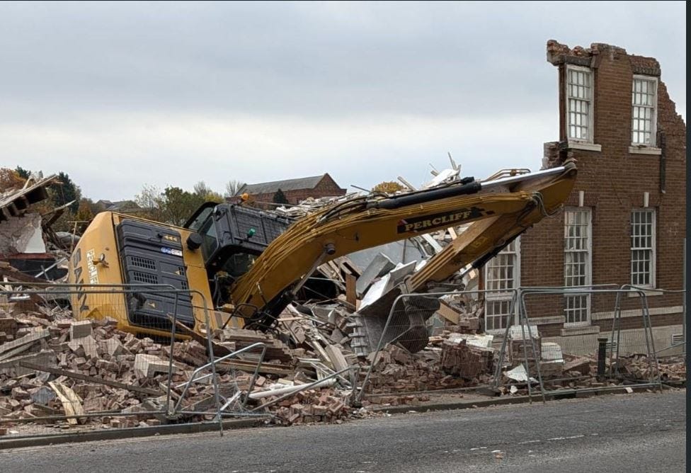 Over in East Lancashire, calamity struck as work to knock down a building in Blackburn town centre came to a crashing halt when a digger toppled over.