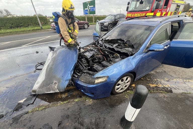 🚗 A car burst onto flames moments after pulling off the motorway. The driver recalled the terrifying incident as he lost power and brakes before the fire started (Blog Preston).