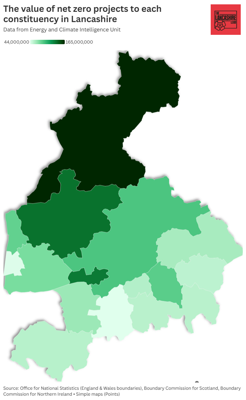 But analysis by the Energy and Climate Intelligence Unit says that net zero jobs are worth £1.16bn of added value to Lancashire’s wider economy and account for 13,421 (2.62% of total jobs).