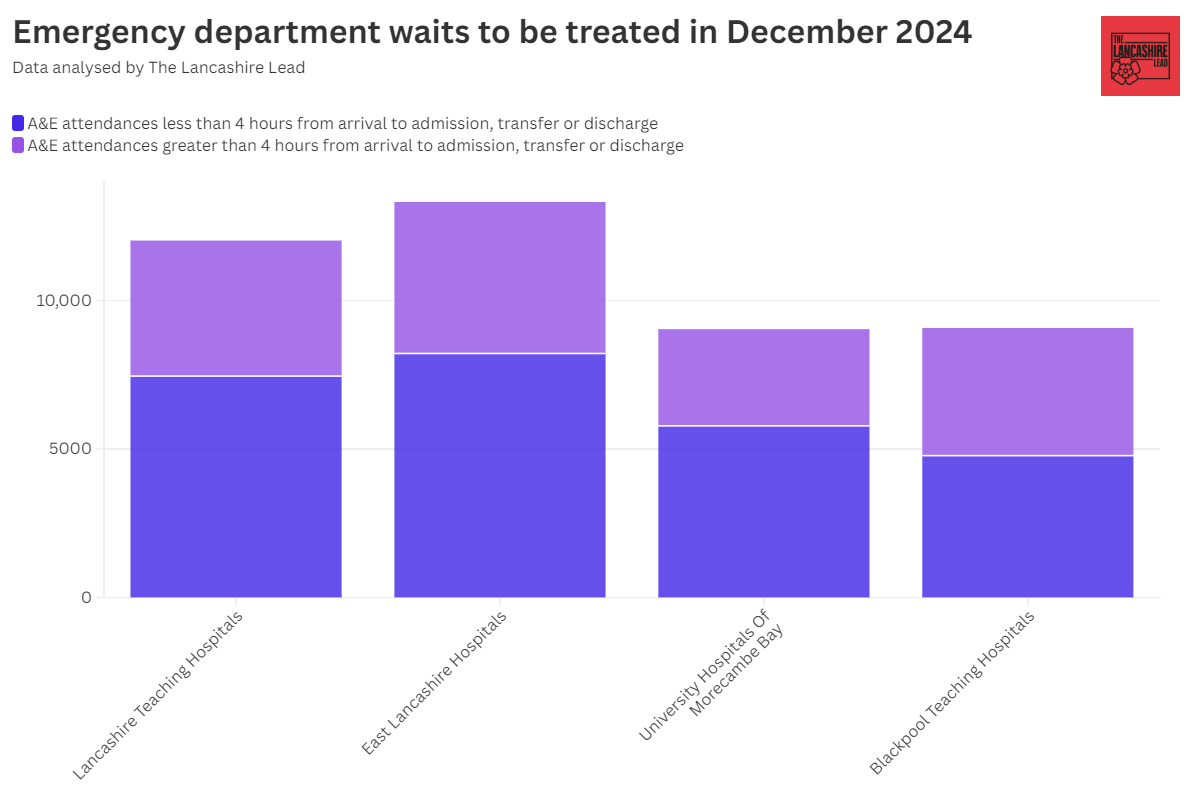 In December 2024, 12,273 people visited Lancashire Teaching Hospitals (Royal Preston and Chorley) emergency departments and 7,665 of those met that goal.