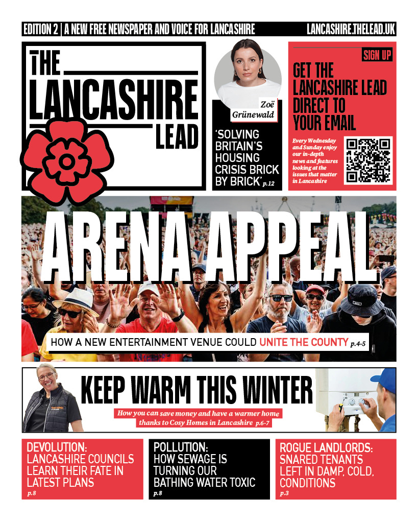 Luke Beardsworth, senior editor for The Lead (North): “From an in-depth look at why an arena could unite Lancashire and be a massive economic boost, to the housing crisis, and exposing the fa-right this edition of The Lancashire Lead is full of news and features that are brought you exclusively from our team.